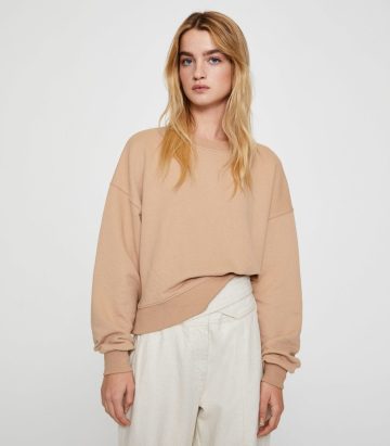 Basic long sleeve sweatshirt with a round neck and ribbed trims. Made of slightly stretchy fabric.