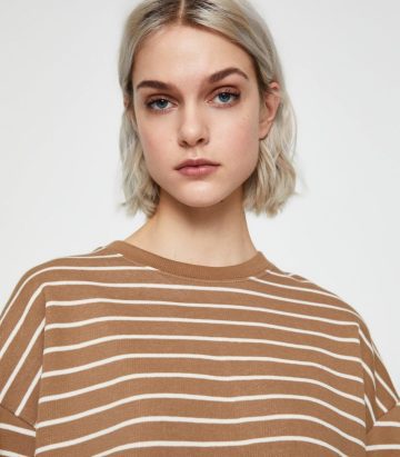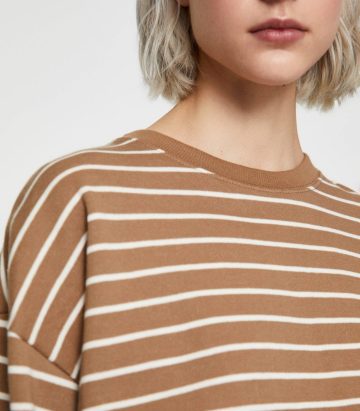 Long sleeve basic striped print sweatshirt with a round neckline. Made of cotton.