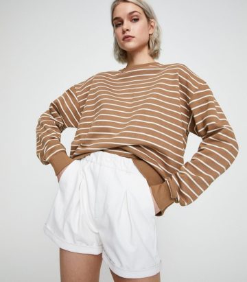 This sweatshirt is a true testament to the timeless appeal of minimalist design. Featuring a classic stripe print, combines comfort with casual style, making it a versatile addition to any wardrobe.